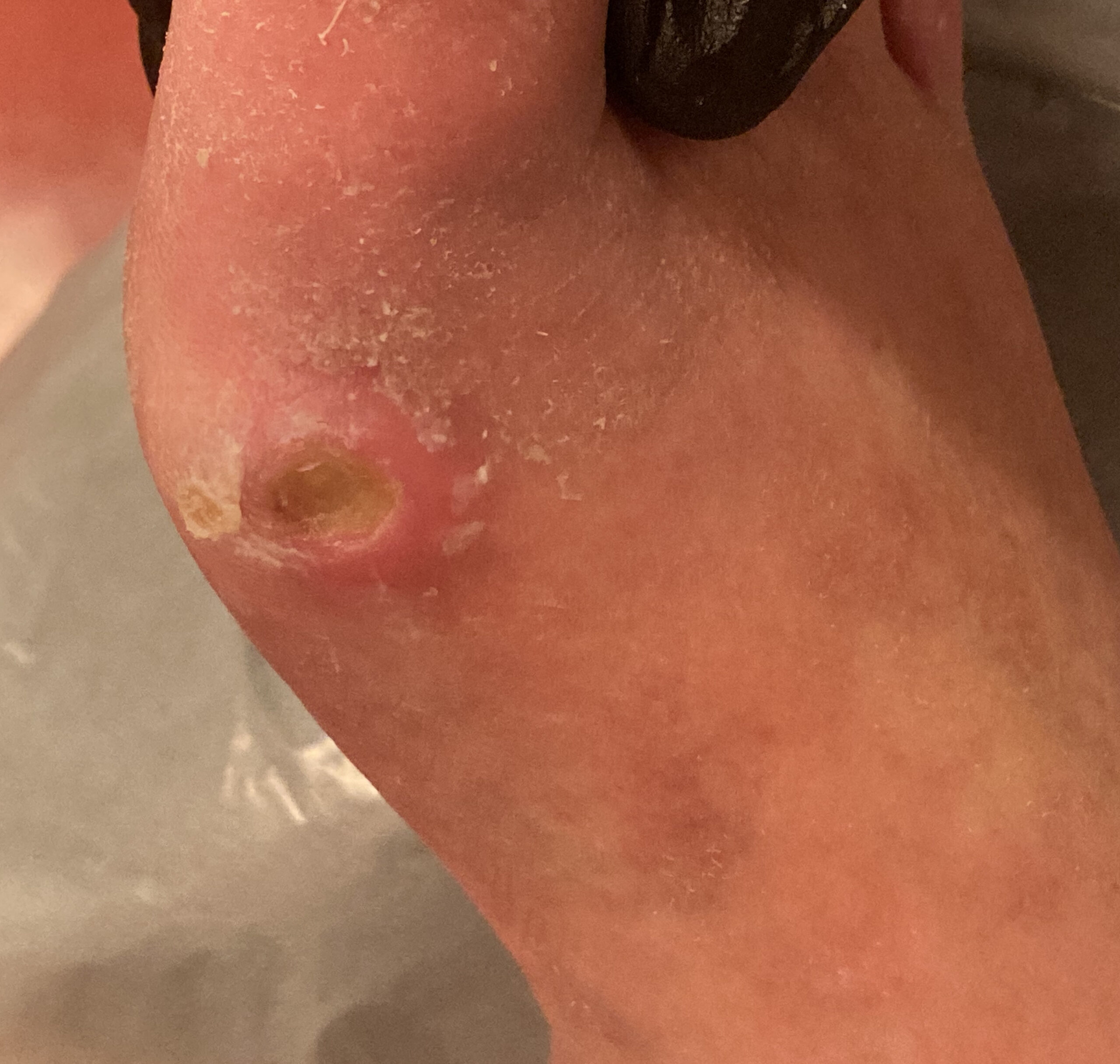 Kleine Wunde auf der Ferse bei Sklerodermie