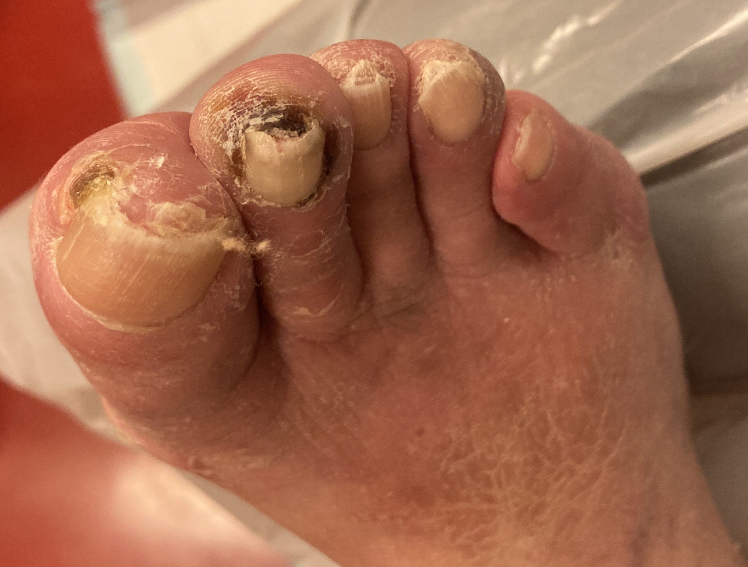 Bei etwa 40 % der Menschen mit Sklerodermie kommt es zu Geschwüren oder offenen Wunden an den Zehen. Aufgrund der Verhärtung der Haut und der Gefäßverengung (Raynaud-Syndrom) heilen Wunden bei Sklerodermie-Patienten oft sehr langsam und sind anfällig für Infektionen.